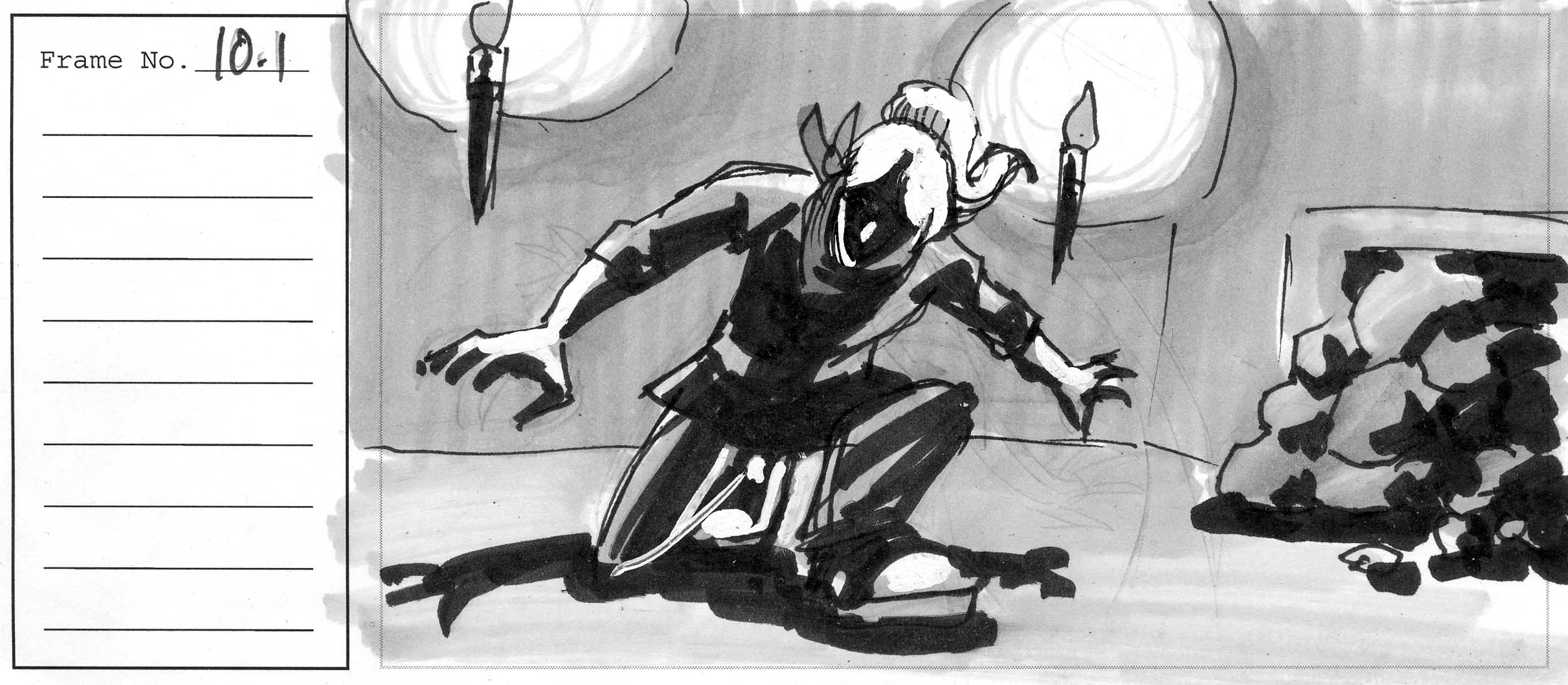 Storyboard frame for short animation “Sands of Time”